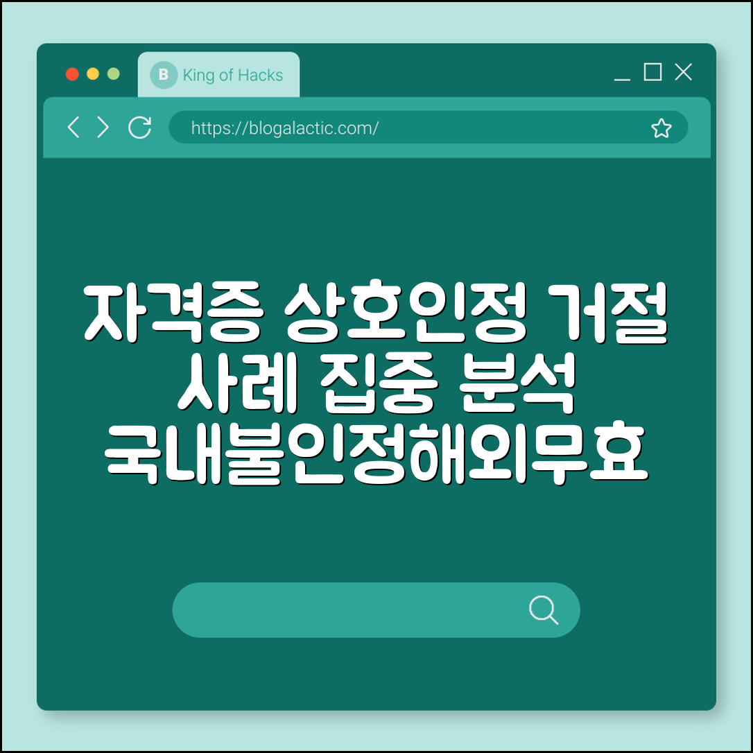 자격증 상호인정 거절 사례는 주로 국내불인정, 해외무효, 그리고 민간자격증에서 발생합니다. 거절 사유를 정확히 파악해 활용 가능한 자격증인지 확인하는 것이 중요합니다. 특히 각 국가별 법적 기준과 인증 체계, 자격증 발급기관의 신뢰도 차이를 꼼꼼히 비교해야 합니다.